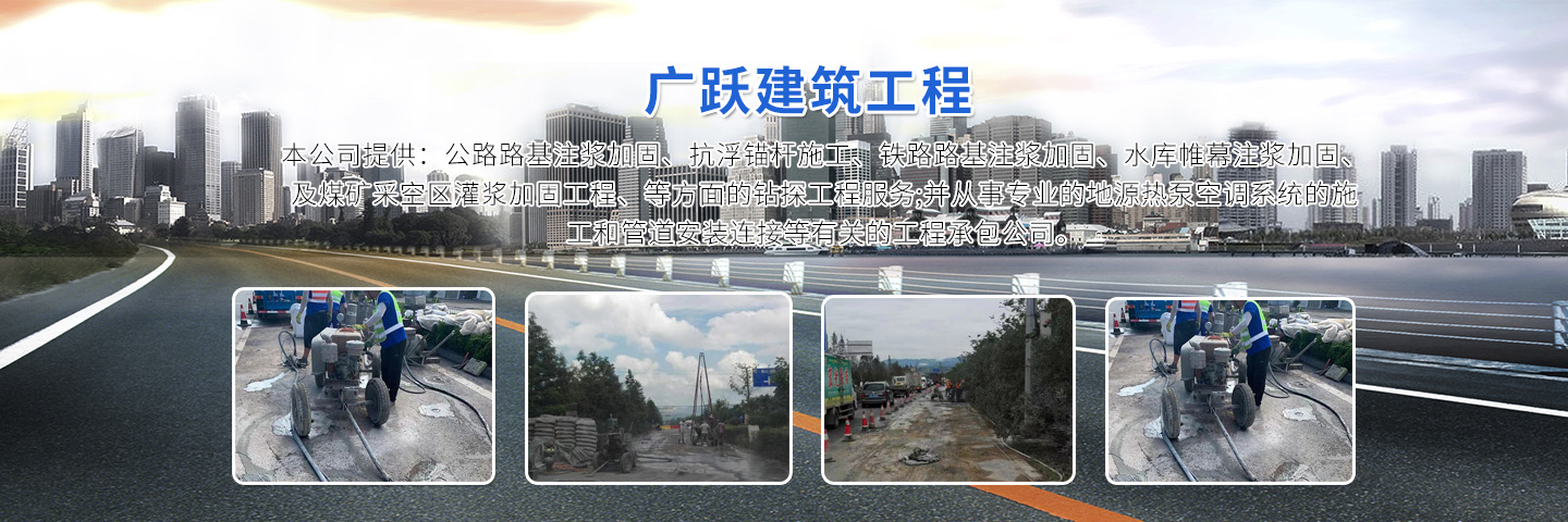 徐州廣躍建筑工程有限公司,公司成立于2010年,有專業(yè)施工人員50人,從事專業(yè)加固注漿施工。 本公司提供:公路路基注漿加固、抗浮錨桿施工、鐵路路基注漿加固、水庫帷幕注漿加固、及煤礦采空區(qū)灌漿加固工程、等方面的鉆探工程服務(wù);并從事專業(yè)的地源熱泵空調(diào)系統(tǒng)的施工和管道安裝連接等有關(guān)的工程承包公司。 公司成立以來一直專注于地質(zhì)鉆井工作,技術(shù)力量雄厚、設(shè)備先進(jìn):擁有專業(yè)的機(jī)械地質(zhì)鉆井精英隊(duì)伍;并具有GSY --150鉆機(jī)30余臺(tái)、GSY---200鉆機(jī)20余臺(tái)、專業(yè)回填封孔砂漿泵4臺(tái)等機(jī)械設(shè)備。公司稟承“優(yōu)質(zhì)的工程、優(yōu)惠的價(jià)格、優(yōu)良的售后服務(wù)”的經(jīng)營理念,以“客戶滿意”為原則,著力打造一支高效、專業(yè)、信譽(yù)的工程服務(wù)團(tuán)隊(duì)。 具體服務(wù)項(xiàng)目:工程施工降水井、水源空調(diào)井、地源熱泵井、機(jī)鉆深井(工廠專用井)、石頭井、飲用水井、農(nóng)田井、地基降水處理、大型基坑降水、地下室、車庫以及橋梁注漿加固等業(yè)務(wù)。可用于廠生產(chǎn)用水,機(jī)械冷卻用水和生活用水,用水量可根據(jù)貴公司的需求量身訂做。